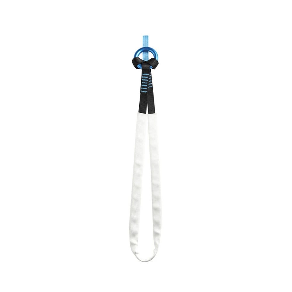 A robust polyester sling for anchoring with integrated ring. The moveable abrasion protector protects the sling, and the sewn loop/ring combination provides multiple anchoring options.