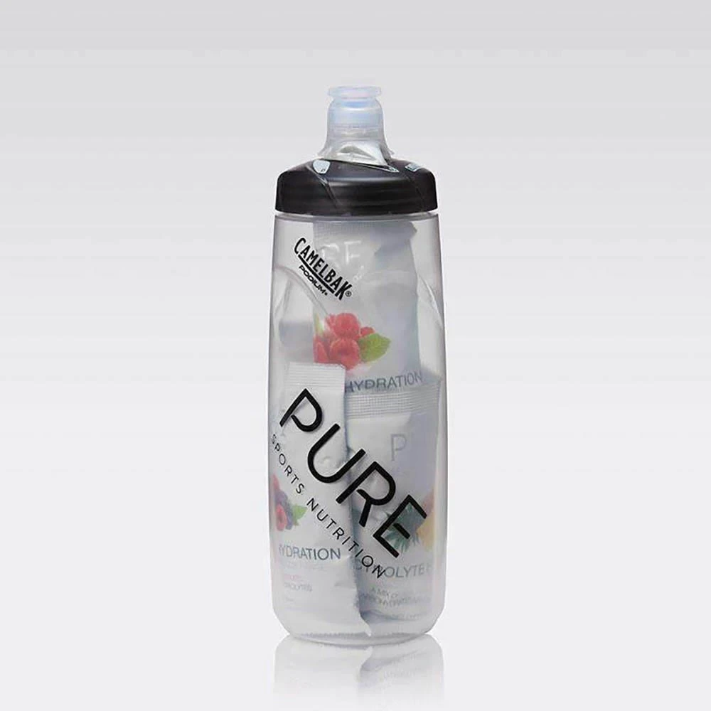 4 x 42g single-serve PURE Electrolyte Hydration sachets (1 of each flavour: Raspberry, Pineapple, Lemon & Superfruits) PURE CamelBak Podium 710ml water bottle.
